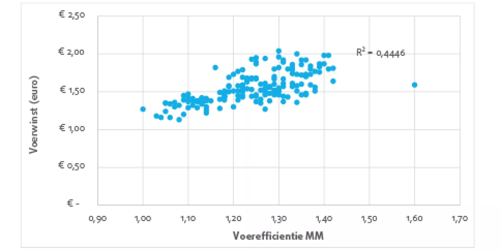 Met deze vernieuwde inzichten realiseren we hogere voeropnames en verbeteren we tegelijkertijd de pens- en darmgezondheid. Dat zien we direct terug in de resultaten uit onze VitalMonitor. Bedrijven met een hogere voerefficiëntie behalen een duidelijk hogere voerwinst.